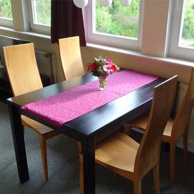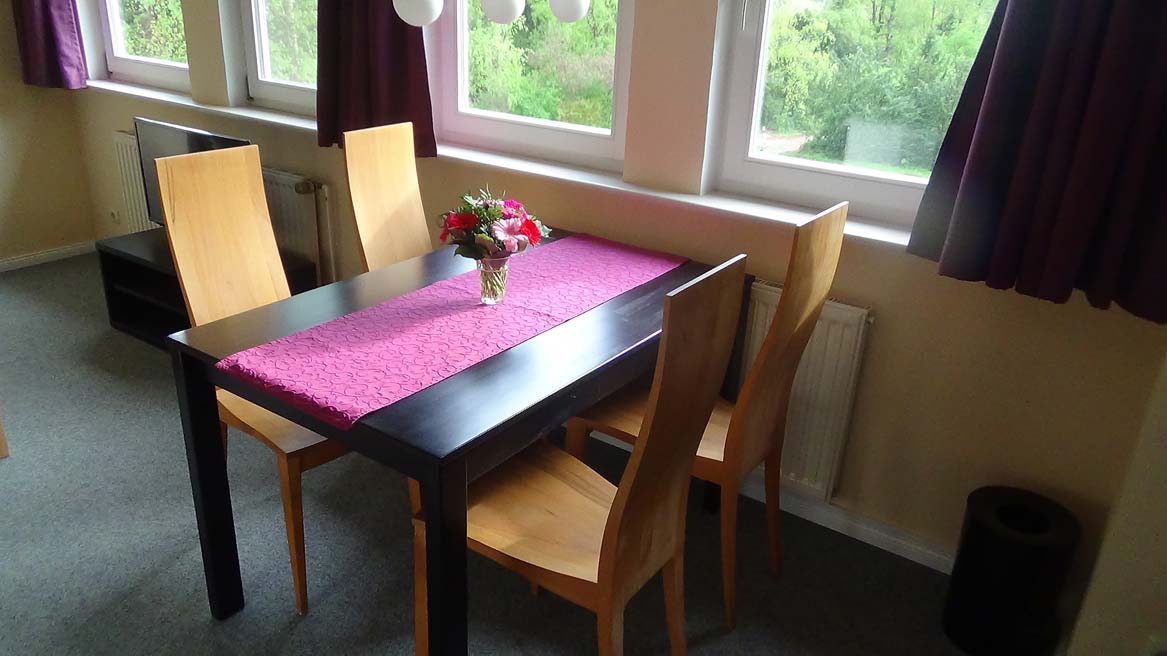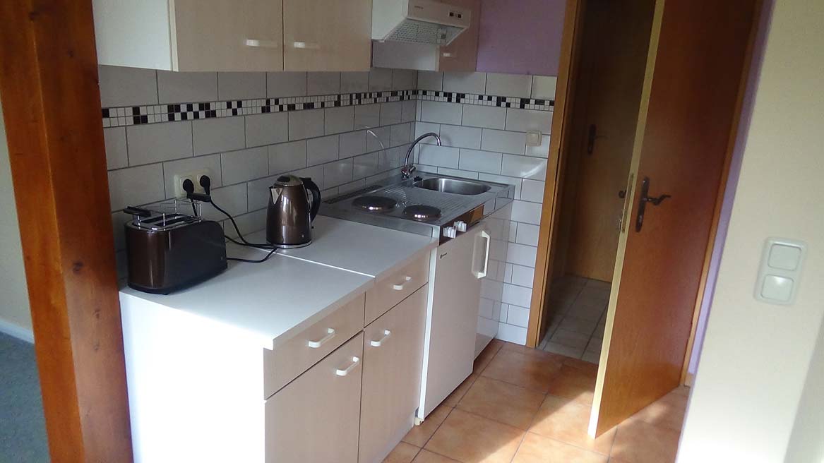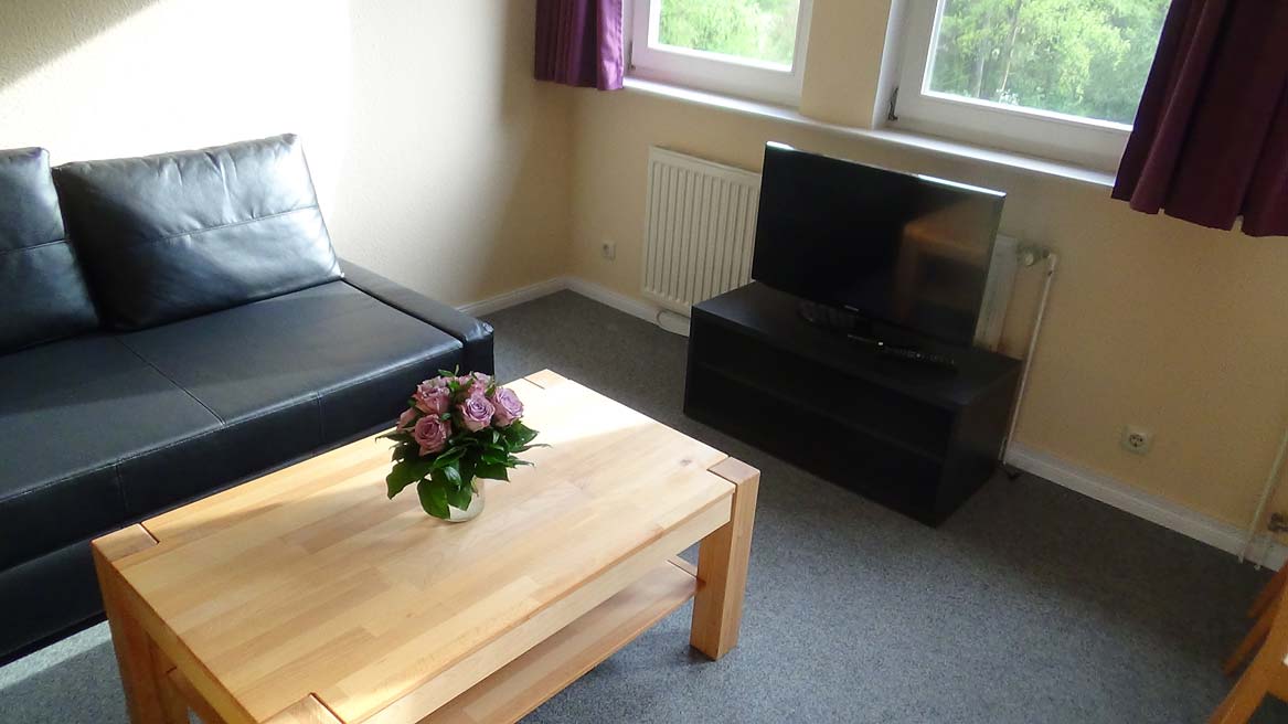 Unser Appartement West bietet unseren Gästen nicht nur einen Blick auf das weitläufige Grundstück, sondern für einen komfortabelen Aufenthalt auch eine Pantry, die zum Wohnraum hin offen ist, einen Esstisch für vier Personen und eine Sofaecke mit Fernseher. Das Doppelbett steht gemütlich seperat. Im Anschluss an den Wohn- und Schlafbereich befindet sich ein Bad mit Dusche und WC. Eine Zubettung für zwei weitere Personen auf dem Schlafsofa ist möglich. Auch gibt es für unsere Gäste einen Aufenthaltsbereich außerhalb des Hauses, um die schönen Morgen- und Abendstunden zu genießen.