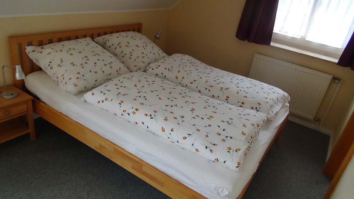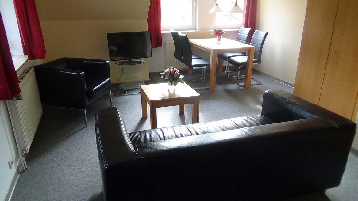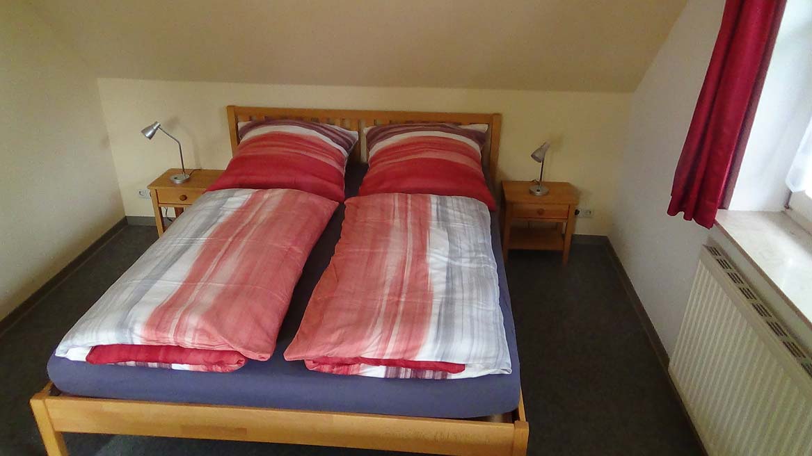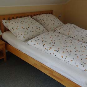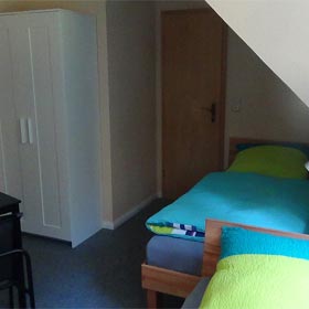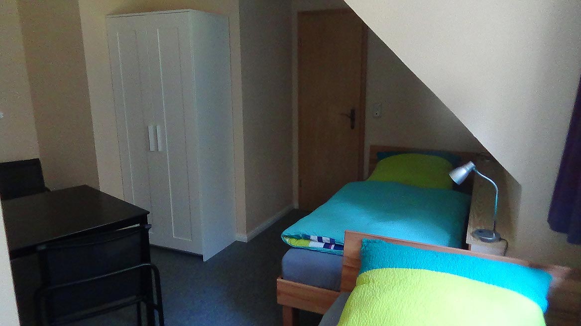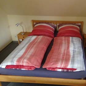 Betten, Schrank und Sitzplatz im Appartement Ost