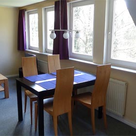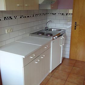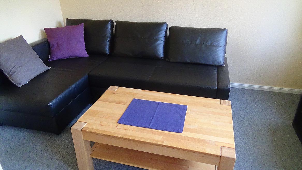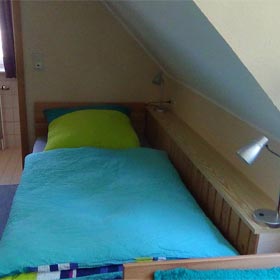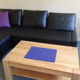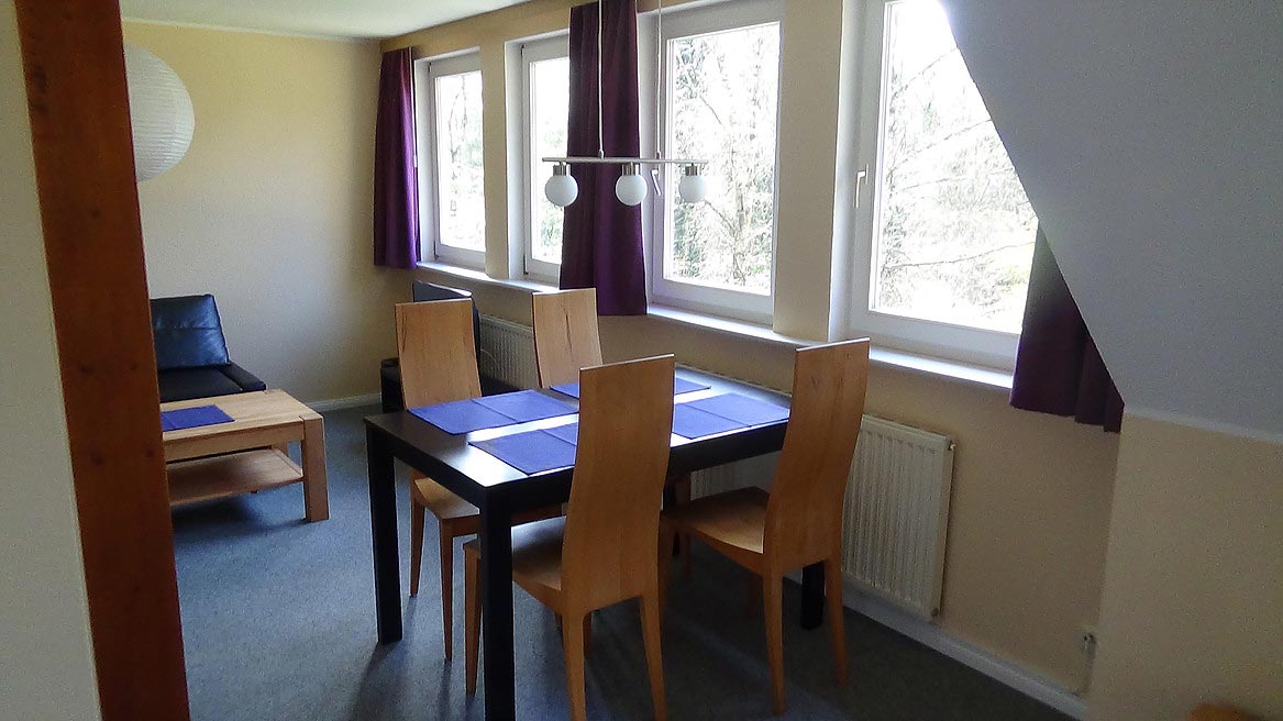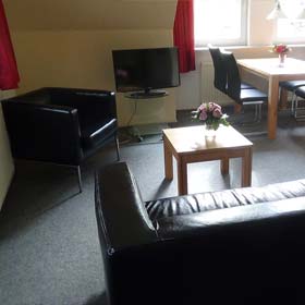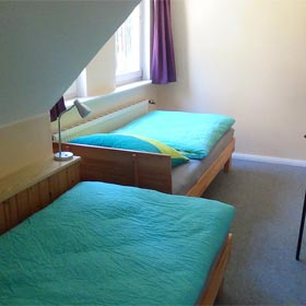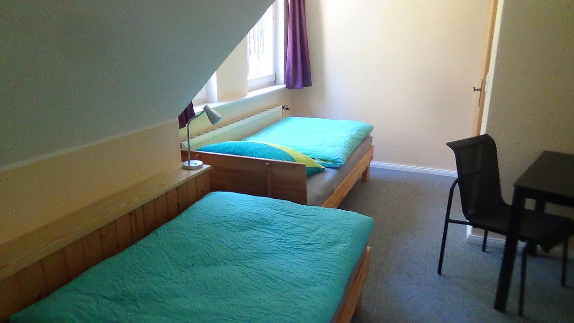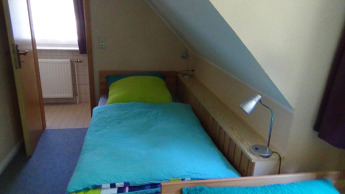 Betten, Schrank und Sitzplatz im Appartement Ost